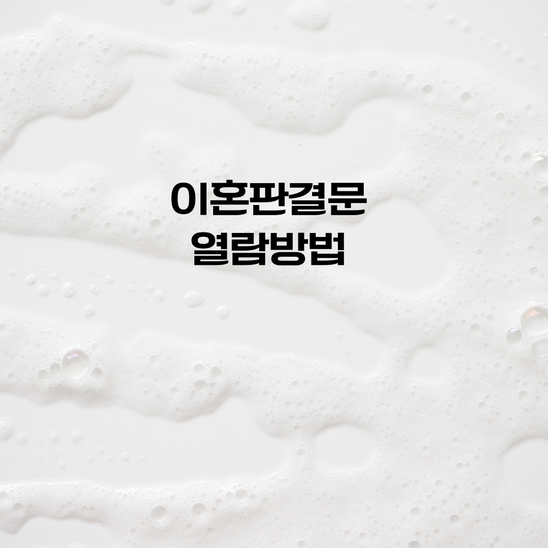 이혼 판결문은 행정처리나 법적 증빙에 꼭 필요한 공식 문서입니다. 인터넷을 통한 열람 방법부터 법원 방문 시 필요한 절차, 준비서류까지 자세하게 안내해 드립니다. 복사나 출력이 필요한 경우에도 단계별로 따라 할 수 있도록 구성했습니다. 이 글 하나로 이혼 판결문 열람에 대한 모든 궁금증을 해결할 수 있습니다.